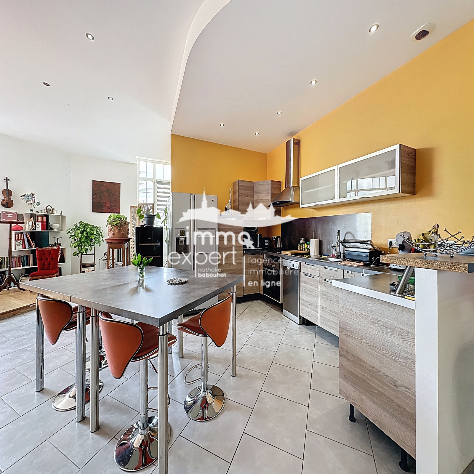D’une vaste pièce de vie lumineuse avec cuisine ouverte et équipée