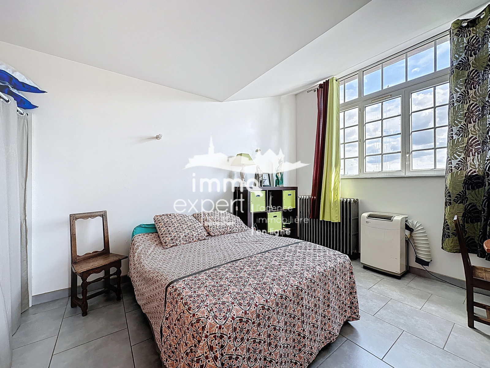 Au 3e étage avec ascenseur d’un immeuble bien entretenu, cet appartement est baigné de lumière grâce à sa triple baie vitrée exposée sud-ouest, offrant une vue dégagée sur le centre-ville.