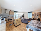La maison propose une surface habitable d’environ 100 m² et se compose d’une grande pièce de vie lumineuse avec cuisine ouverte, parfaite pour partager des moments conviviaux en famille. Les combles ont été entièrement isolés il y a deux ans, et un poêle à granulés programmable a été installé, garantissant un excellent confort thermique et des économies d’énergie.