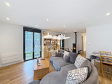 La partie nuit offre quatre chambres, adaptées aussi bien à une famille qu’à un projet de télétravail, ainsi qu’une salle de bains et un WC séparé.