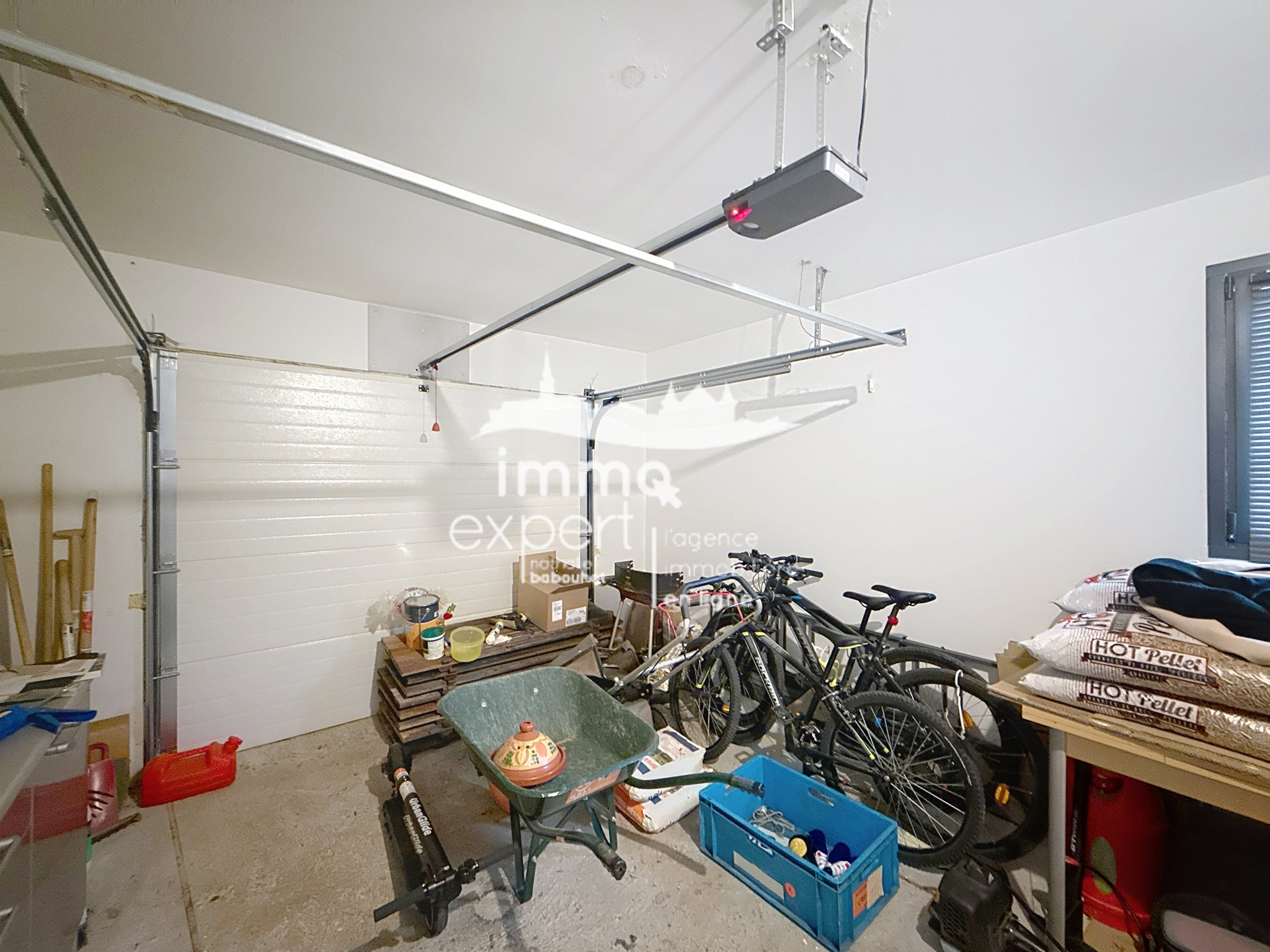 Un garage complète le bien, intégrant un pratique espace buanderie.