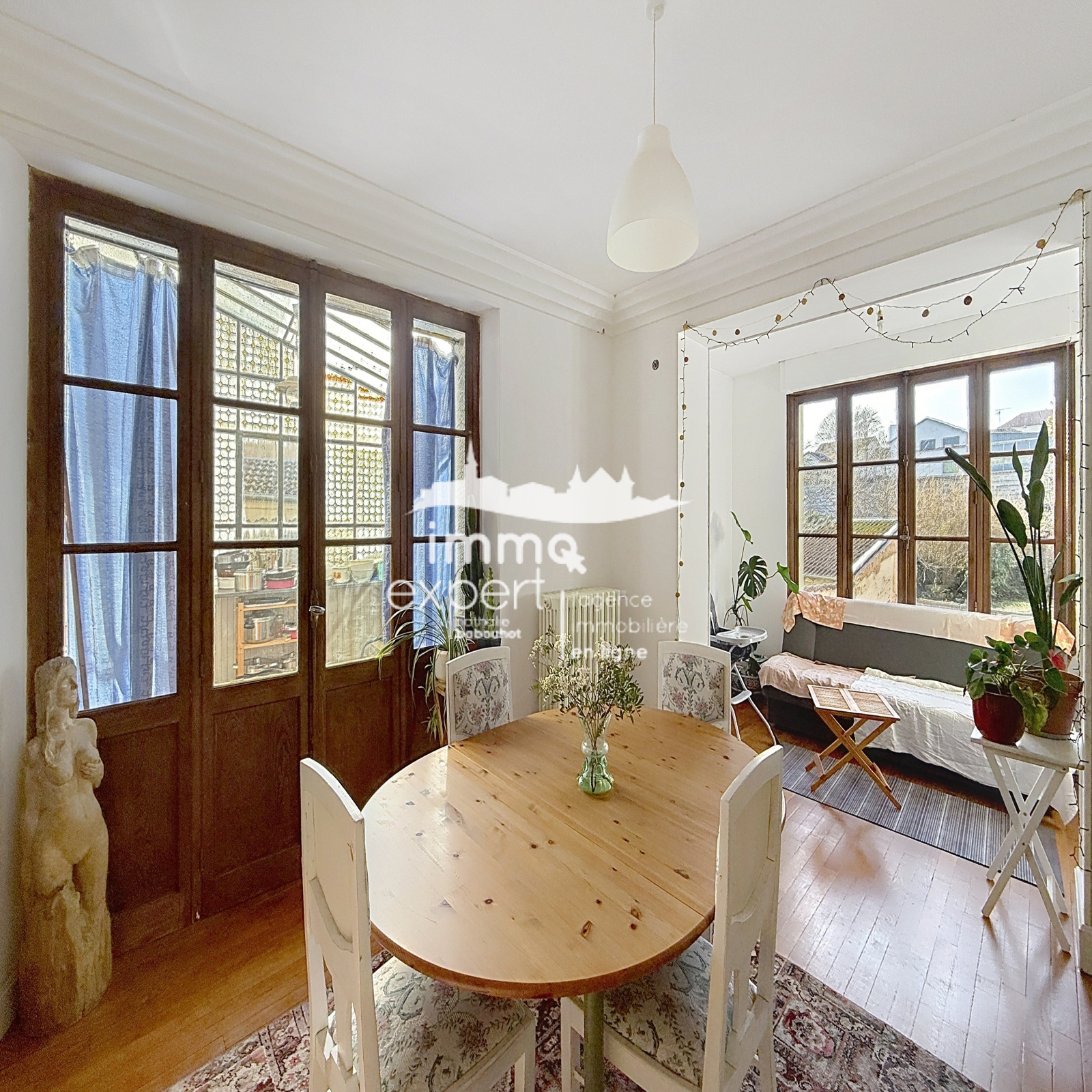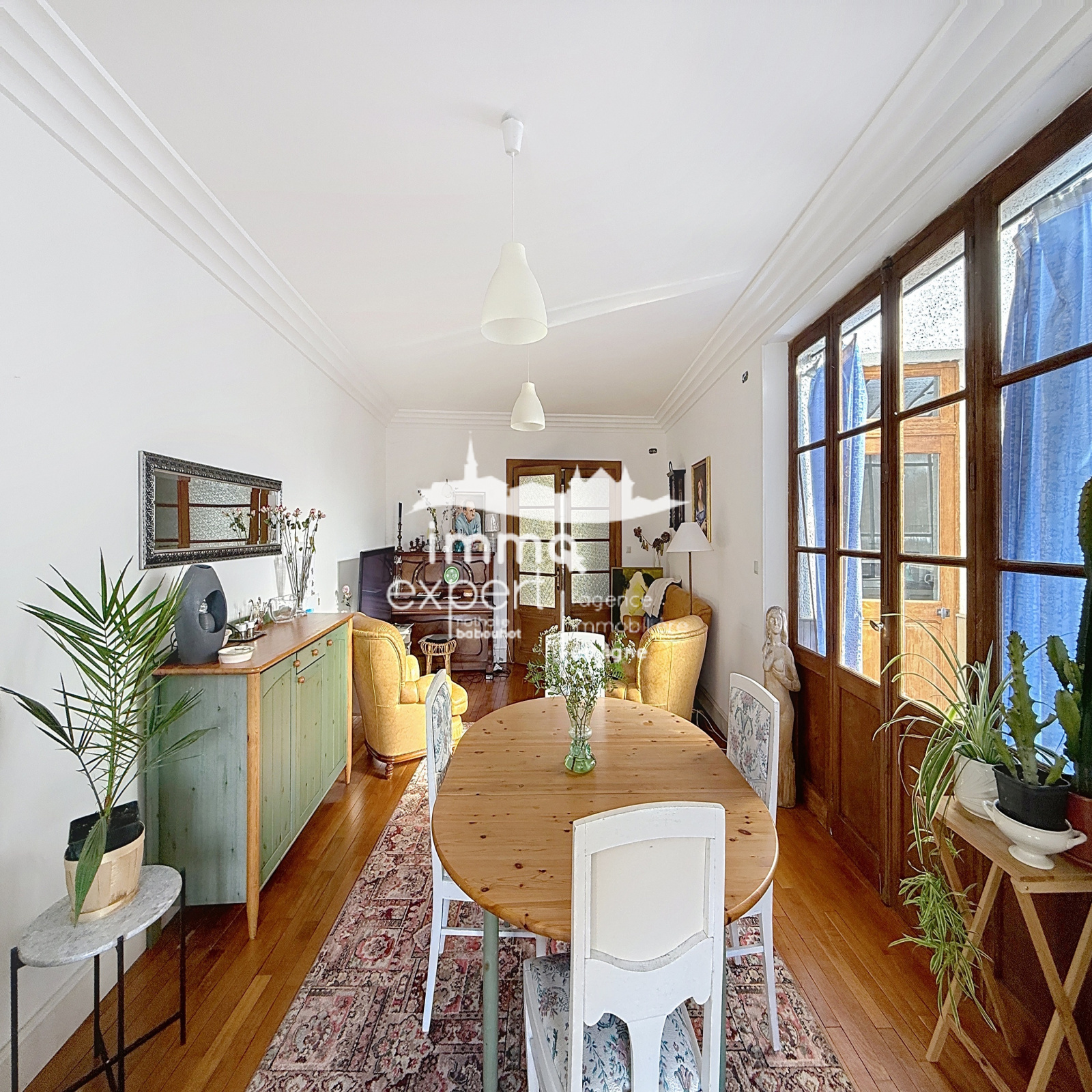 À vendre : grande maison de ville située en plein centre, offrant de très beaux volumes, un jardin plat et un fort potentiel d’aménagement. Ce bien rare sur le secteur se développe sur trois niveaux et permet aussi bien un projet de résidence principale spacieuse qu’un investissement immobilier avec création possible de plusieurs logements.
