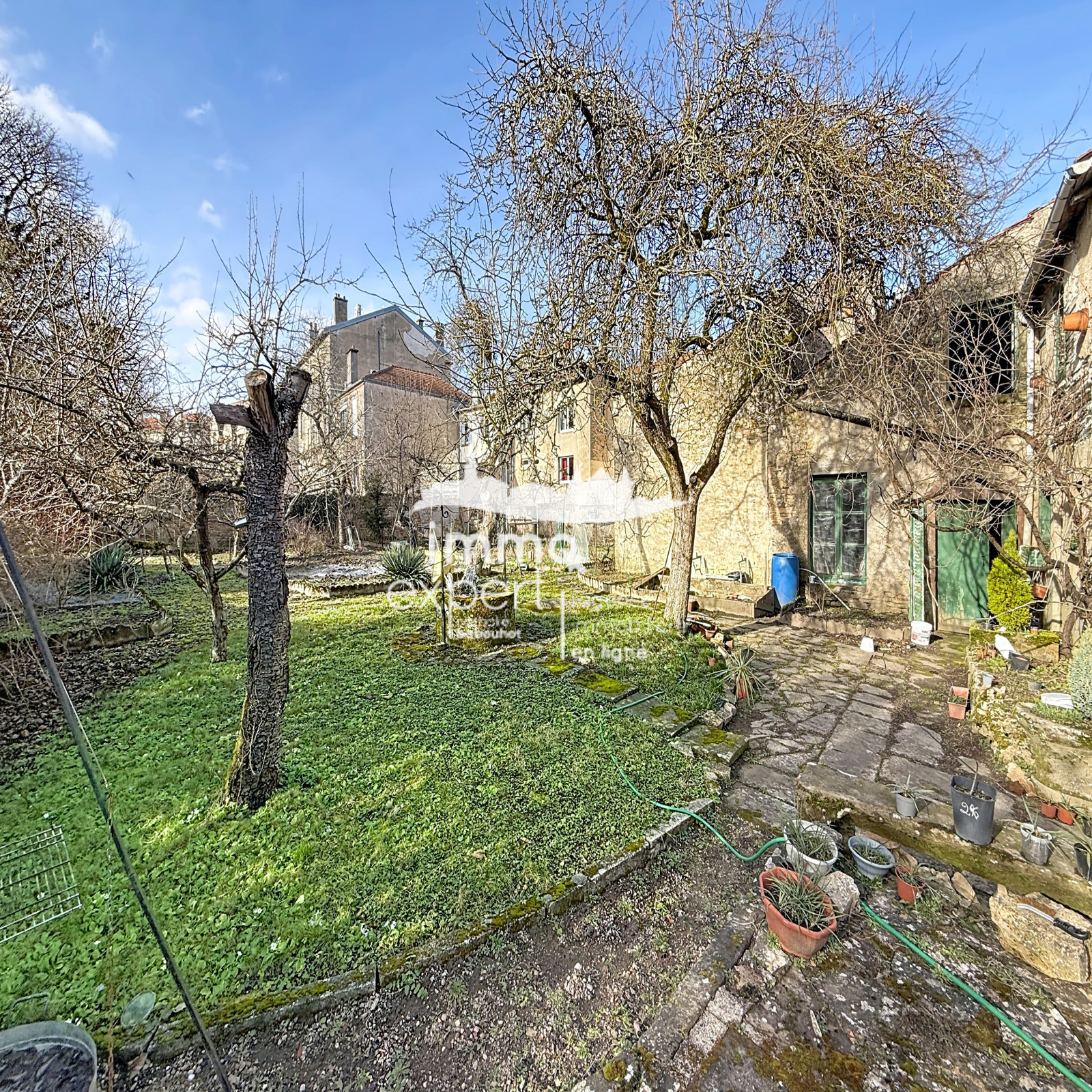À l’extérieur, vous profiterez d’un grand jardin plat, rare en centre-ville, idéal pour les familles ou pour valoriser un projet locatif.