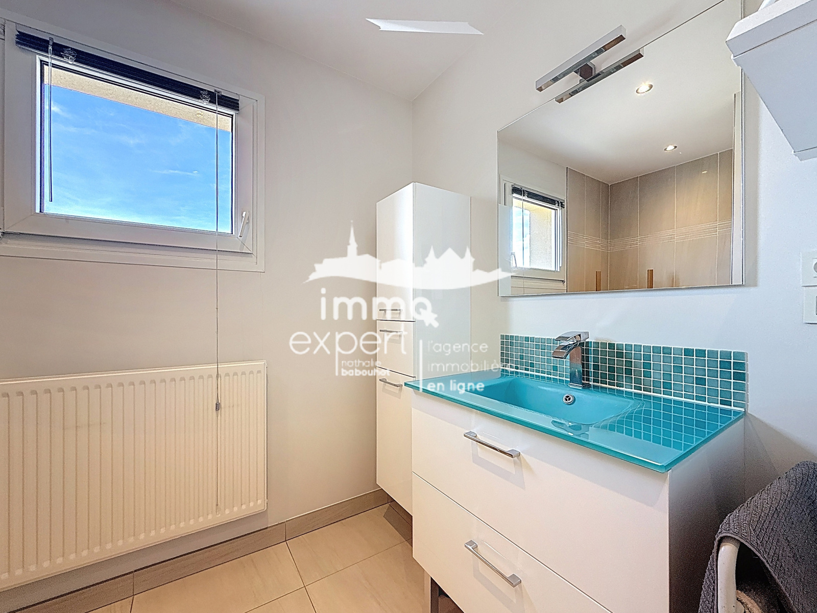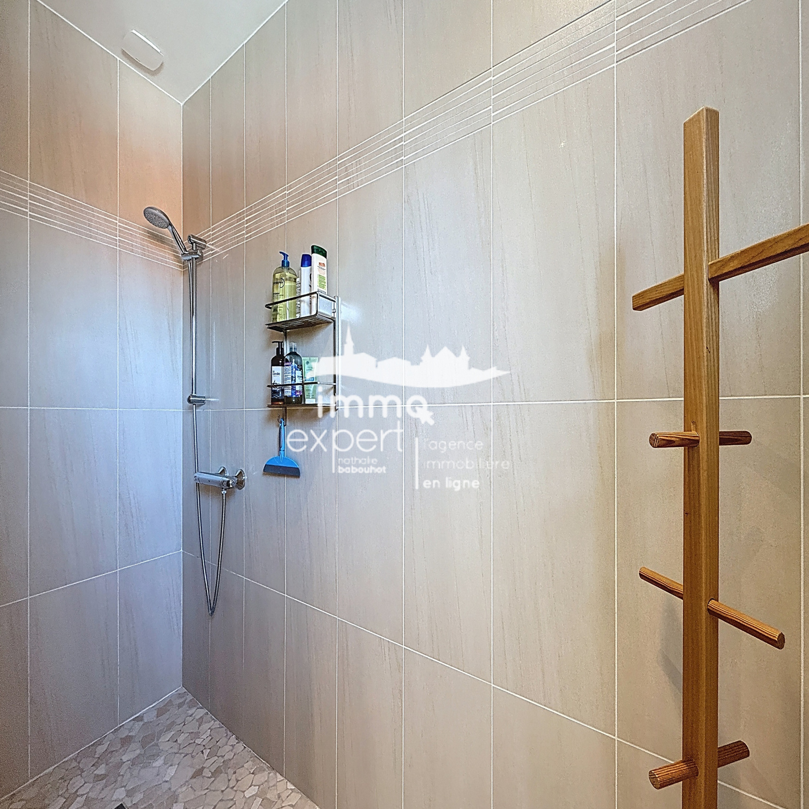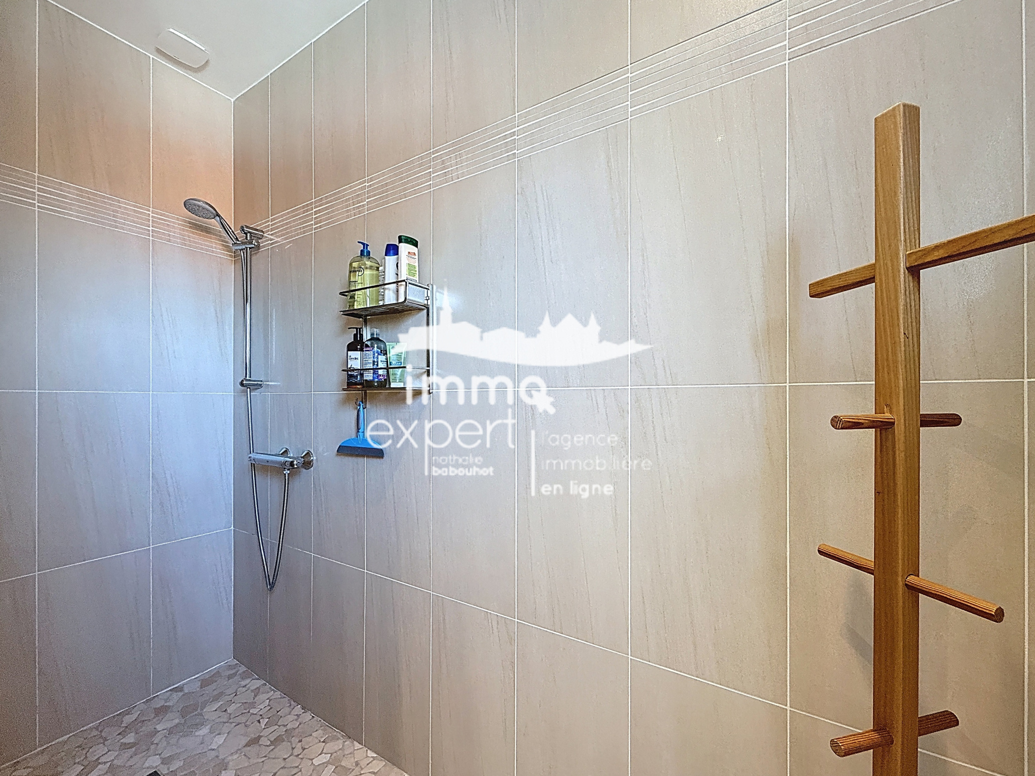 Au demi-niveau supérieur, vous trouverez trois chambres, dont une avec un spacieux dressing, une salle de bains moderne équipée d’une douche à l’italienne et d’une vasque, ainsi qu’un WC séparé.