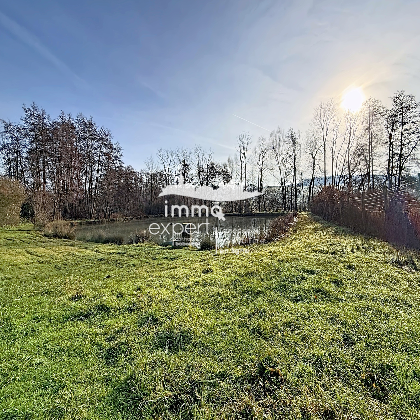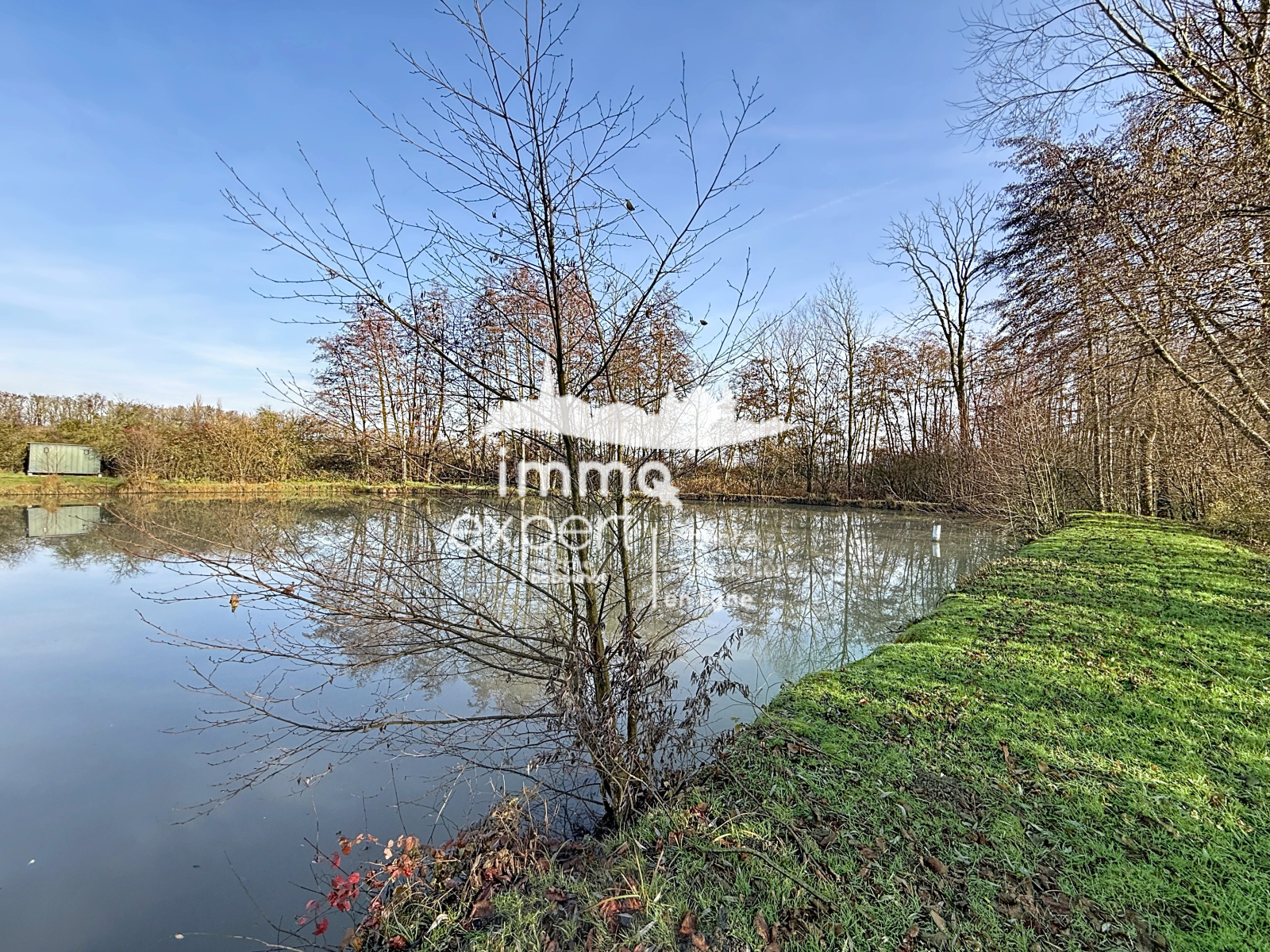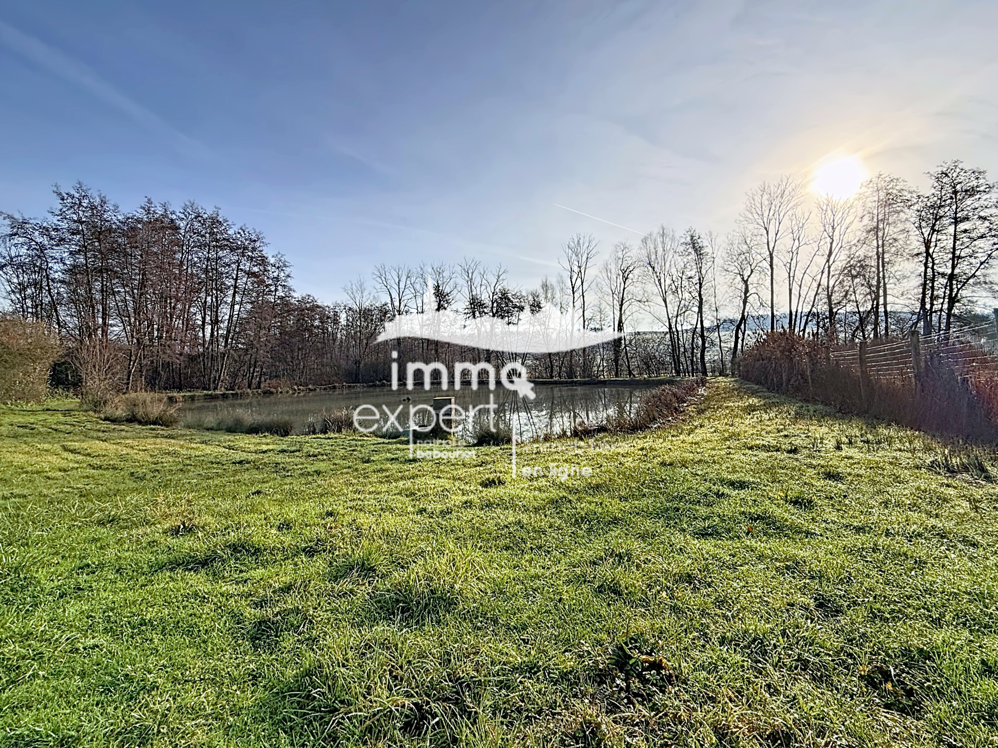 Étang d’environ 2 000 m², parfait pour la pêche ou la détente